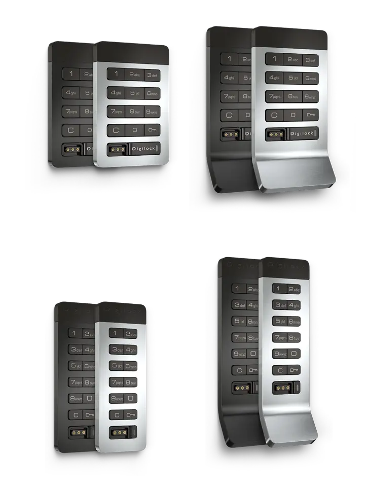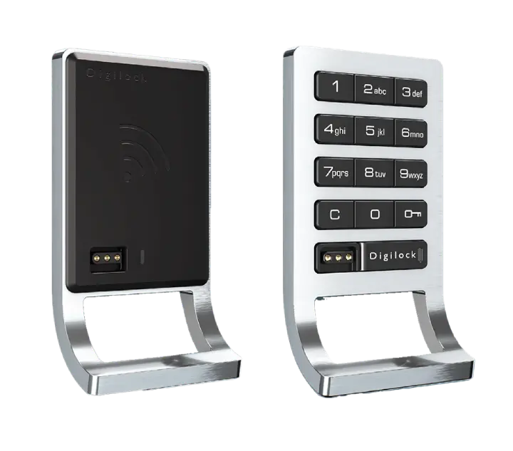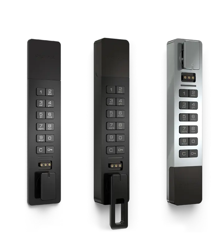 القفل الأيقوني من Digilock بتصميم نحيف وخصائص دخول عبر الهاتف، مع فتح تلقائي متطور. مثالي للمرافق عالية الحركة، متوافق مع معايير ADA، ومقاوم للماء بمعيار IP55.