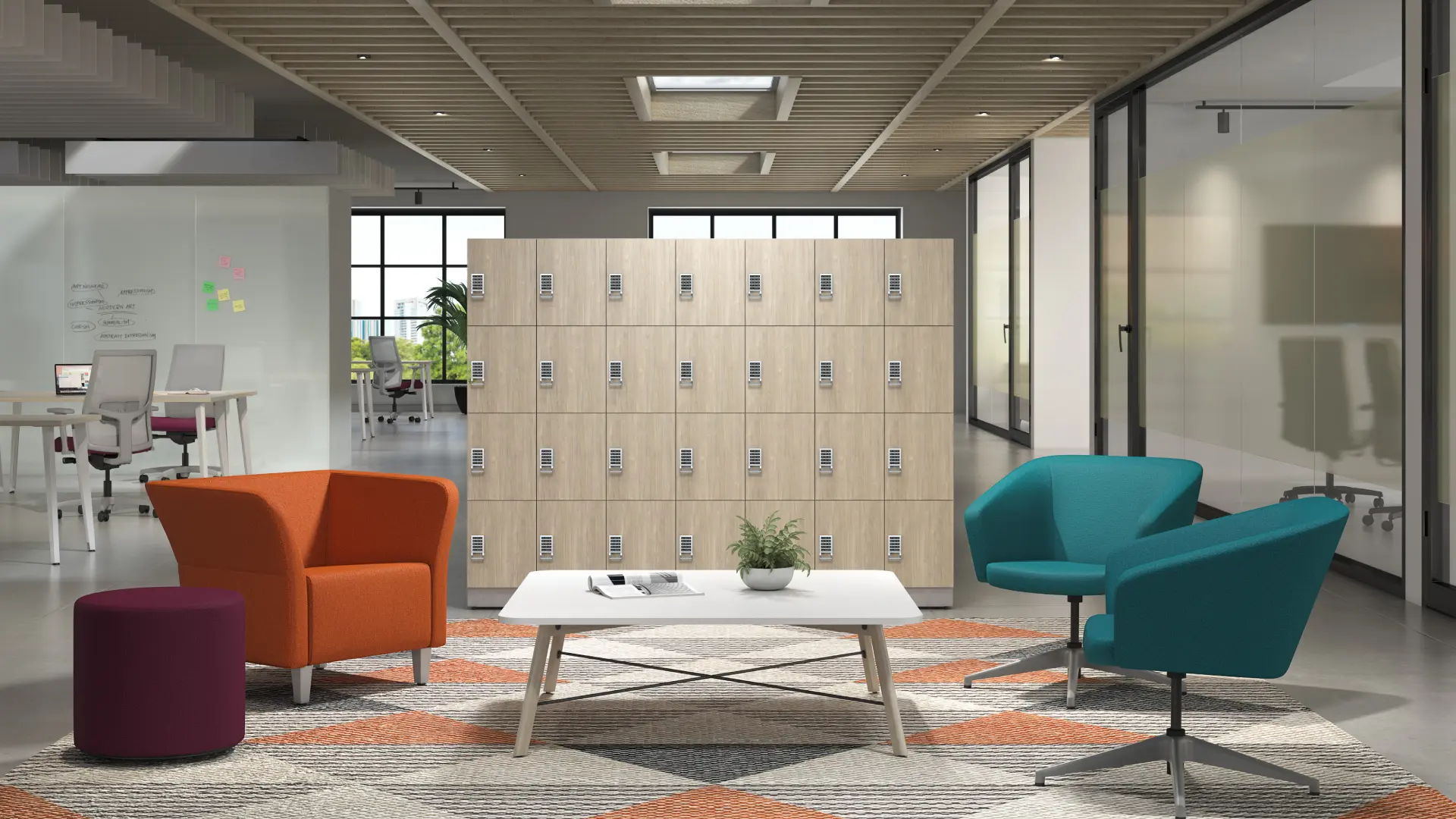 خيار أنيق للمكاتب ومراكز العافية والرعاية الصحية، مع مزايا ذكية مثل استلام الطرود وحجز الخزائن بسهولة.